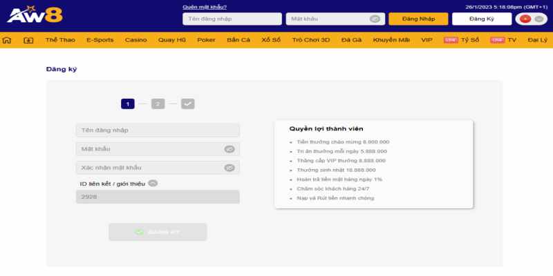 Khi đã truy cập vào trang chủ AW8 thành công, bạn có thể thực hiện các bước sau để đăng ký và đăng nhập tài khoản của mình: