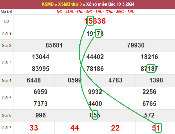 ⭐️ Cầu được ghép từ vị trí số thứ 2 ở giải ĐB và vị trí số thứ 2 của giải 7.4 đã chạy được 4 ngày => Dự đoán lô 51 sẽ xuất hiện trên bảng kết quả ngày 20/3/2024.
