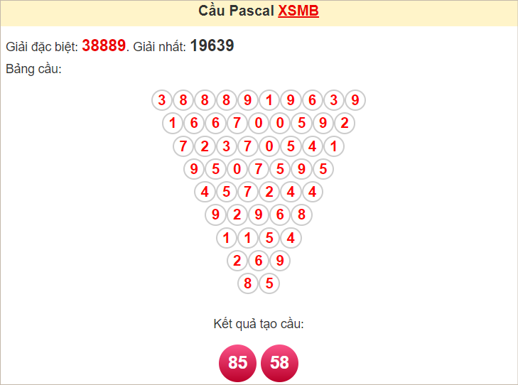 Kết quả từ soi cầu Pascale là cặp số may mắn: 85 58