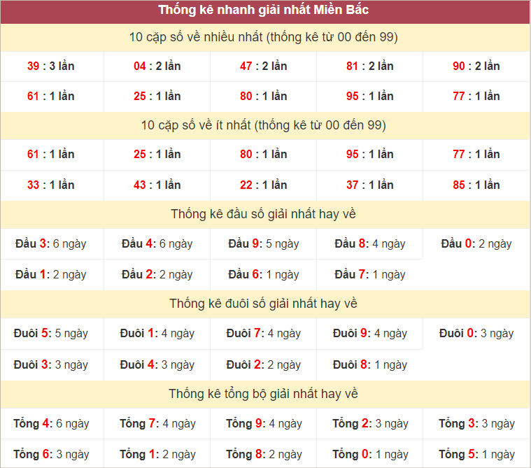 Thống kê lô tô miền Bắc hôm nay 4/7