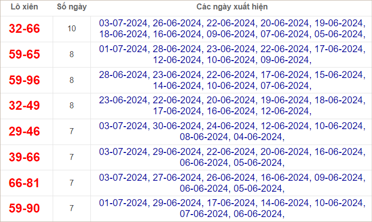 THỐNG KÊ LÔ TÔ KẾT QUẢ XSMB NGÀY 3-7-2024