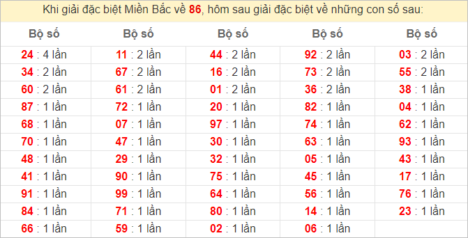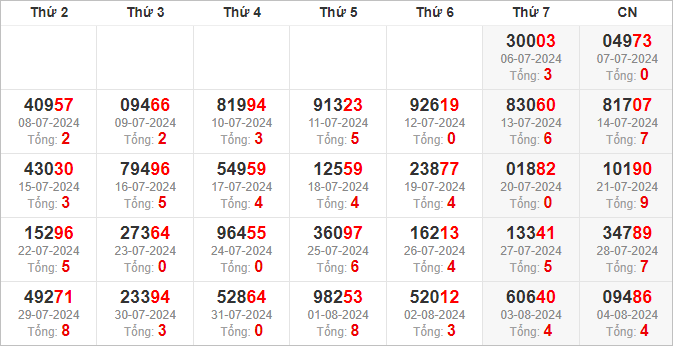| Ngày | Giải ĐB | Ngày | Giải ĐB | Ngày | Giải ĐB |