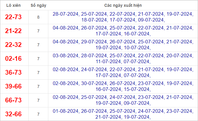 Cặp lô 17, 24, 32, 42 có độ dài 3 ngày