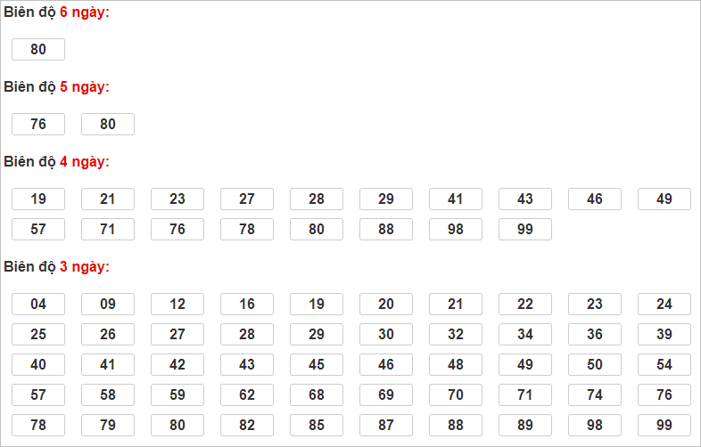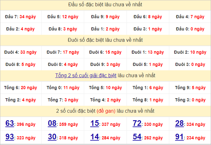 | Con số | Số ngày chưa ra | Ngày ra gần nhất | Gan cực đại |