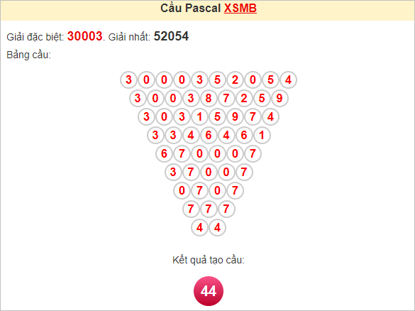 Kết quả từ soi cầu Pascale là cặp số may mắn: 44
