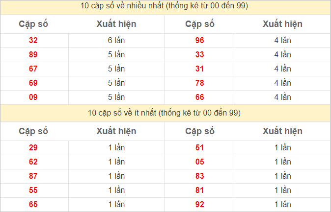 ⭐️ Thống kê tần suất các cặp lô về nhiều trong 10 ngày gần đây: 89 (7 lần), 29, 46, 83 (6 lần), 04, 14, 27, 39 (5 lần)