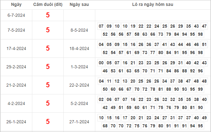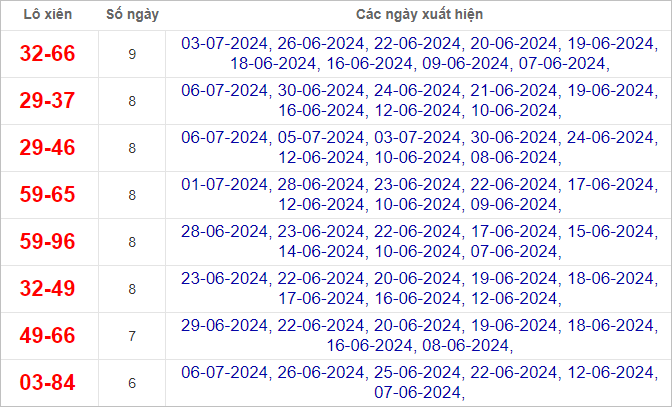 THỐNG KÊ LÔ TÔ KẾT QUẢ XSMB NGÀY 6-7-2024